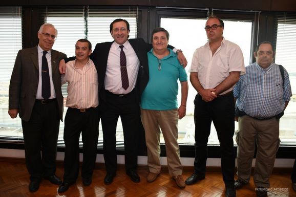 De izquierda a derecha: Ariel Ferragut, gerente de Comunicación Corporativa y Responsabilidad Social de UTE; Nicolás Herrera, gerente comercial de CORI y Portal de la Carne; Prof. José Amy Tejera, director de UTE; Daniel Amy, empresario; Isabelino González Camejo, director de Portal de la Carne; y Artigas Rodríguez, periodista de Agro y Mercado. Foto: UTE