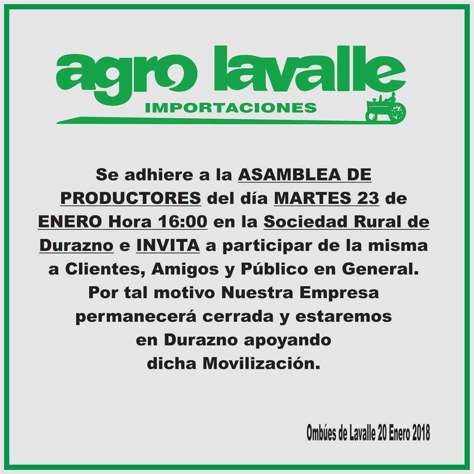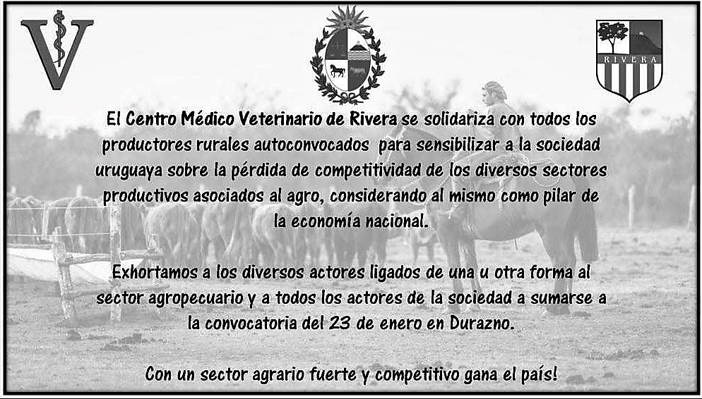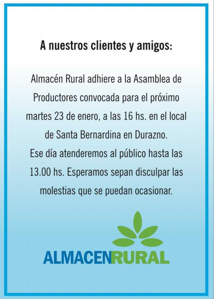 Exhorta a sus asociados a concurrir a la Sociedad Rural de Durazno, en su predio de Santa Bernardina, el martes 23, a las 16 horas, cubrir todo el desarrollo de las actividades propuestas y difundir lo allí actuado y resuelto y seguir los acontecimientos a futuro.