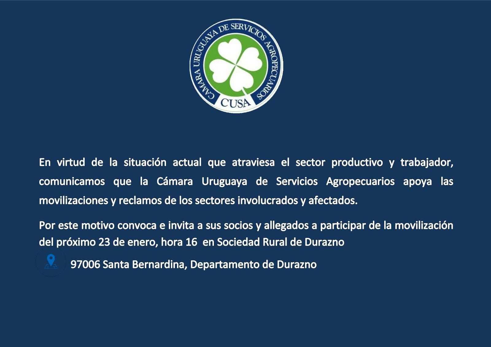 Mientras tanto los productores de uva y bodegueros decidieron movilizarse el martes 23 en apoyo a la actividad que desarrollarán en Durazno, pero optaron por hacerlo en Canelones, para expresarse en el ámbito productivo donde habitualmente accionan, según trascendió en varios medios de prensa.