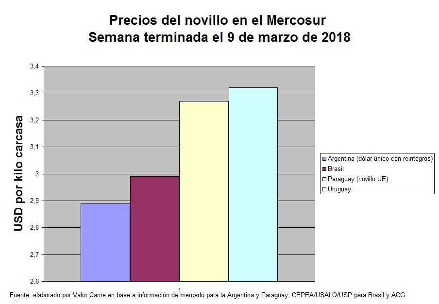 Los valores del novillo terminado en mercados seleccionados, de importancia en el mundo son (en USD por kilo carcasa):